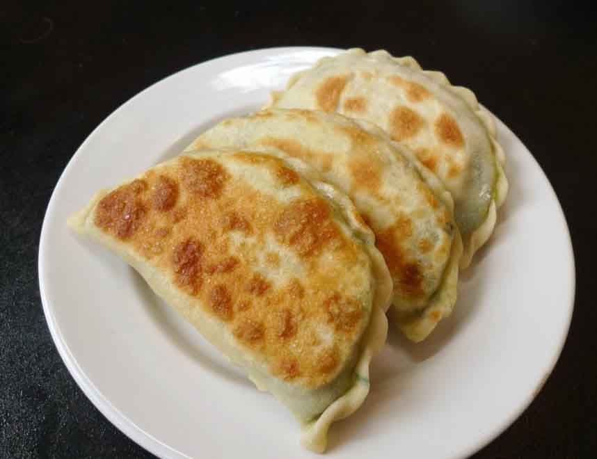 食堂今日菜谱:烙盒子(黄瓜肉,韭菜鸡蛋)凉菜,二米粥...