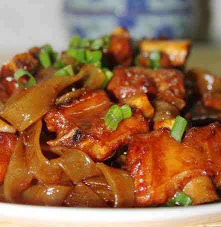 食堂今日菜谱:排骨炖粉条,圆白菜炒豆皮,花生小豆腐,米饭,馒头...